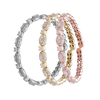 The Marquise Wave Bangle is crafted in sterling silver (21.3g) and encrusted with all diamonds, combining timeless elegance with a modern design. Its flowing marquise-inspired wave setting is detailed with 4.68 carats of small diamonds and 2.56 carats of larger diamonds, giving a total brilliance of 7.24 carats.