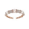 Its stacked style, featuring diamond pavé detailing and smooth pearl-like accents, makes it a versatile piece that transitions effortlessly from daywear to evening glamour. The bracelet’s luxurious shine and intricate craftsmanship make it a standout addition to any jewelry collection.