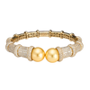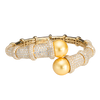Its distinctive design features two golden orbs “kissing” at the center, symbolizing love, unity, and timeless elegance. The surrounding pavé-set diamonds create an irresistible brilliance, making this bracelet a dazzling addition to any collection. Perfect for evening occasions, special gifts, or simply elevating your personal style.