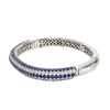 The Landscape Bracelet is a refined and sleek piece that emphasizes horizontal flow and vibrant brilliance. Crafted in Thailand, this bracelet weighs 25.0 g and is set with 5.80 carats of gemstones/diamonds, offered in versatile colorways — Red, Green, Blue, Yellow, Chocolate, Black, Orange, or All Diamonds.