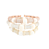 Its stacked style, featuring diamond pavé detailing and smooth pearl-like accents, makes it a versatile piece that transitions effortlessly from daywear to evening glamour. The bracelet’s luxurious shine and intricate craftsmanship make it a standout addition to any jewelry collection.